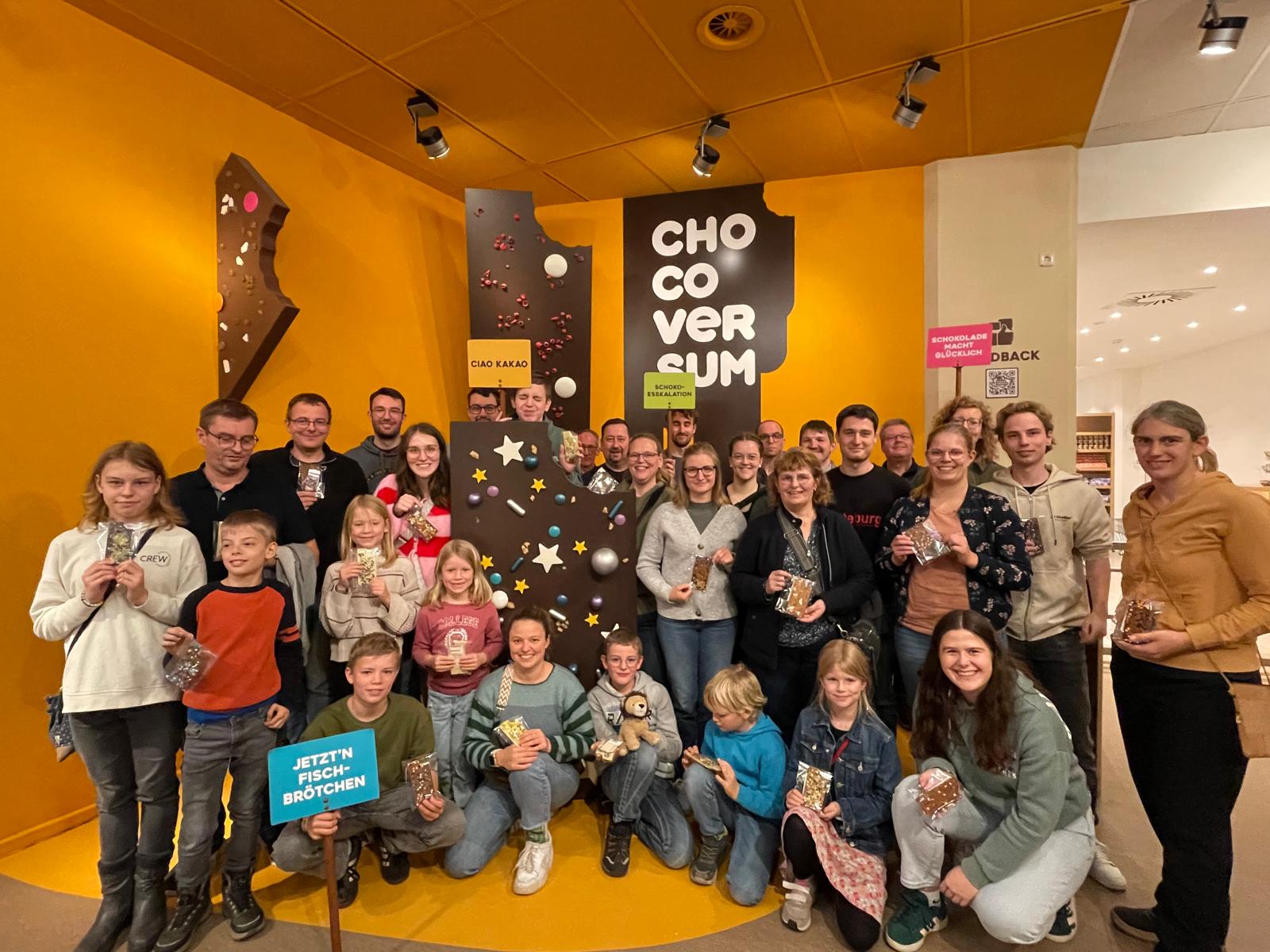 Nach dem Kofferpacken am Sonntag folgte noch die süßeste Veranstaltung des Wochenendes. Wir konnten eine Besichtigung im Chokoversum mitmachen. Dort konnten wir sehen, wie die Herstellung von der Kakaobohne bis zur fertigen Tafel Schokolade abläuft. Dabei durften wir die unterschiedlichsten Reifegrade natürlich probieren.